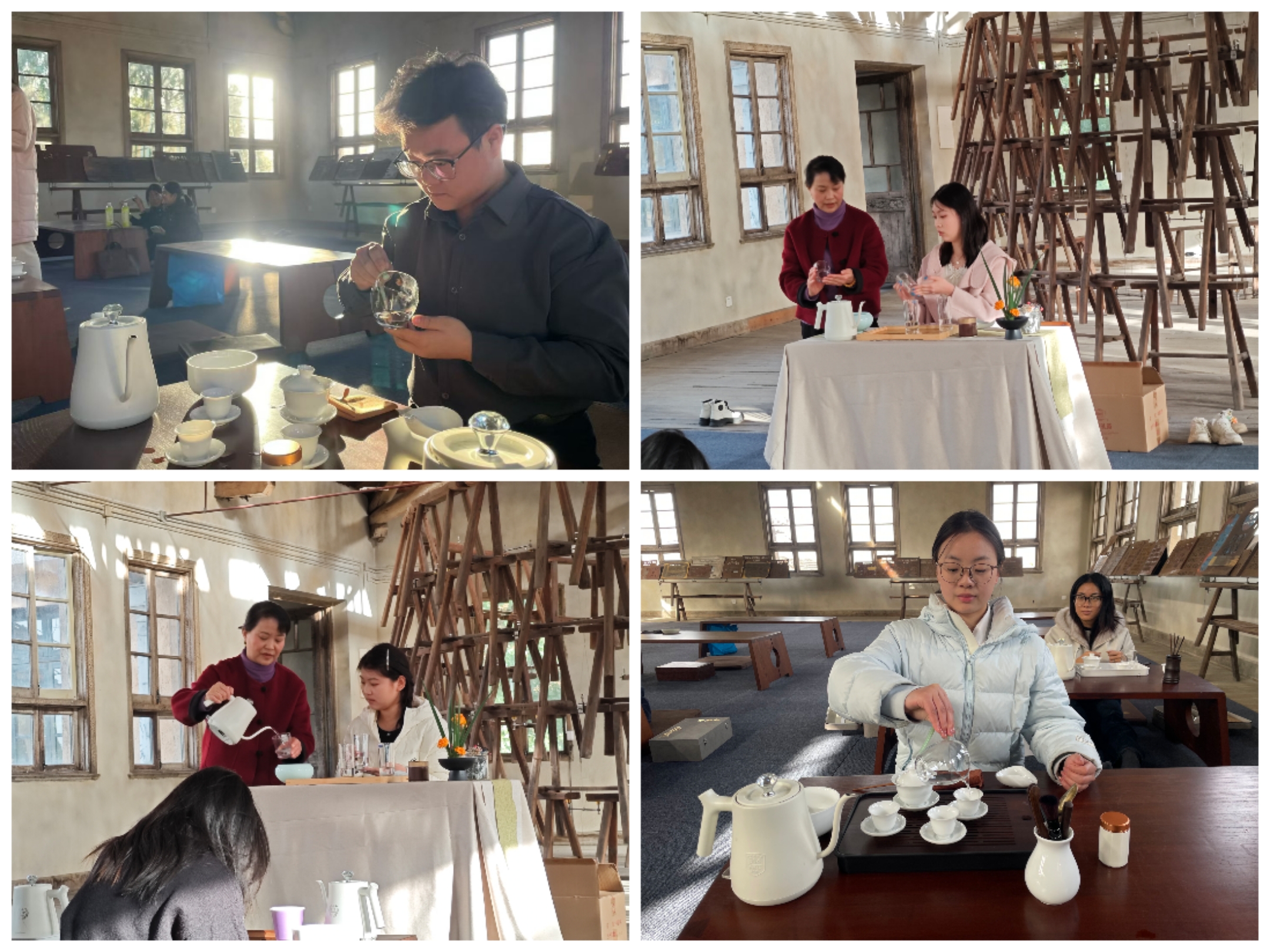 后续课程聚焦实操环节,国家二级评茶技师潘慧春老师现场示范茶艺礼仪、行茶十式及花式茶艺,重点讲解绿茶与红茶的干茶外形、汤色、香气与滋味特点。学生们在课上互相交流辨别心得,进一步提升了对茶叶的认知。