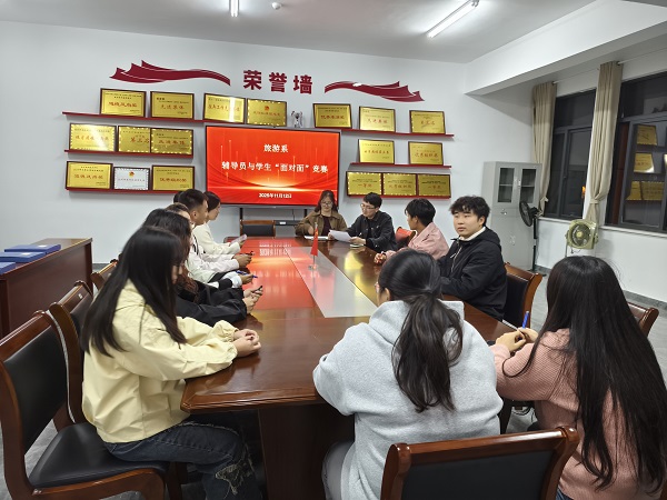 为深入贯彻落实学院《关于组织2025年专、兼职辅导员与学生“面对面”竞赛活动的通知》精神,推动“走近学生、走进学生”工作走深走实,进一步提升辅导员育人实效,11月12日,旅游系在系部会议室成功举办了2025年专、兼职辅导员与学生“面对面”竞赛活动。