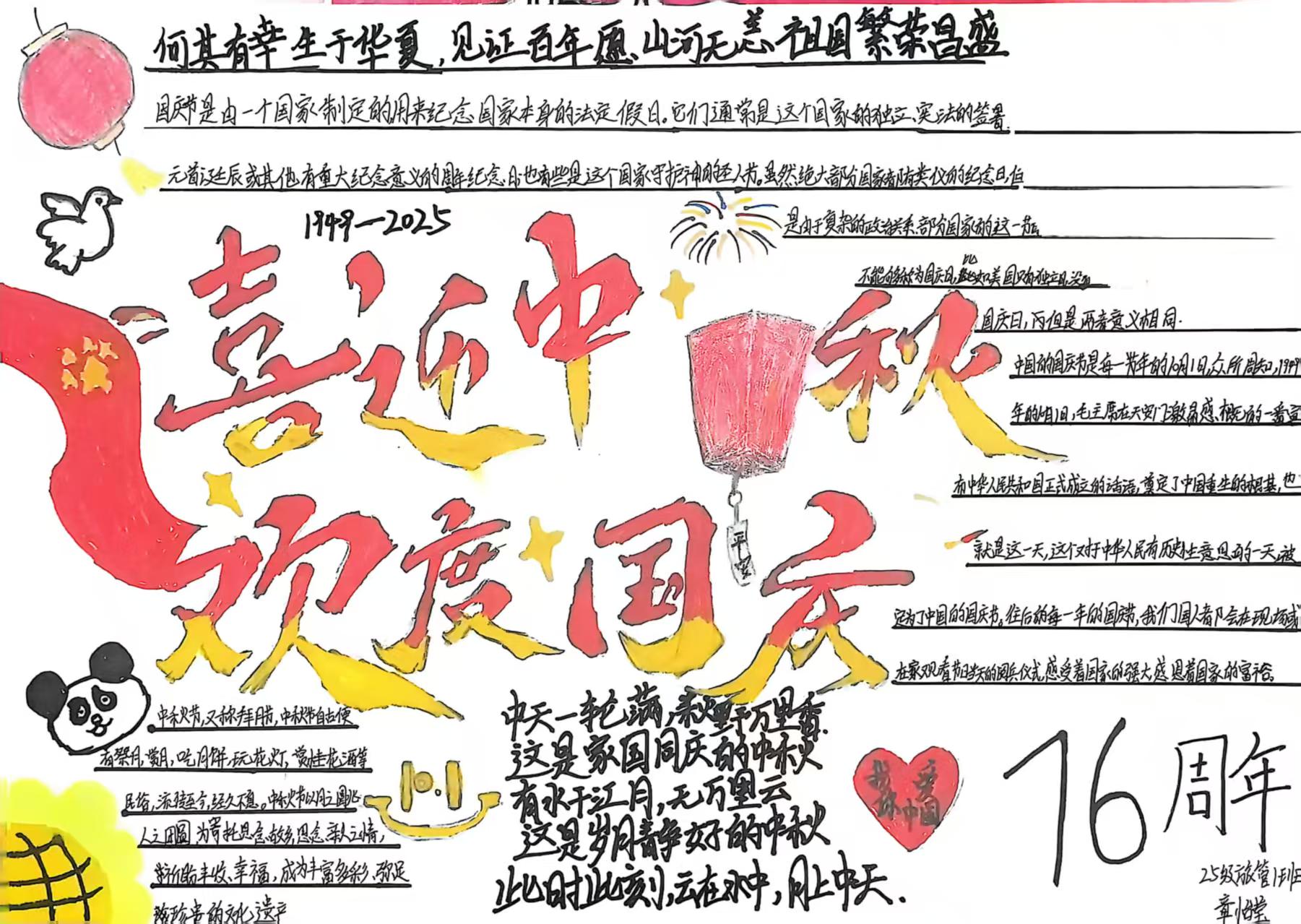旅游系开展“喜迎中秋,欢度国庆”主题手抄报活动 | 来源: 点击数:78次 更新时间:2025/10/1 10:26:42 |