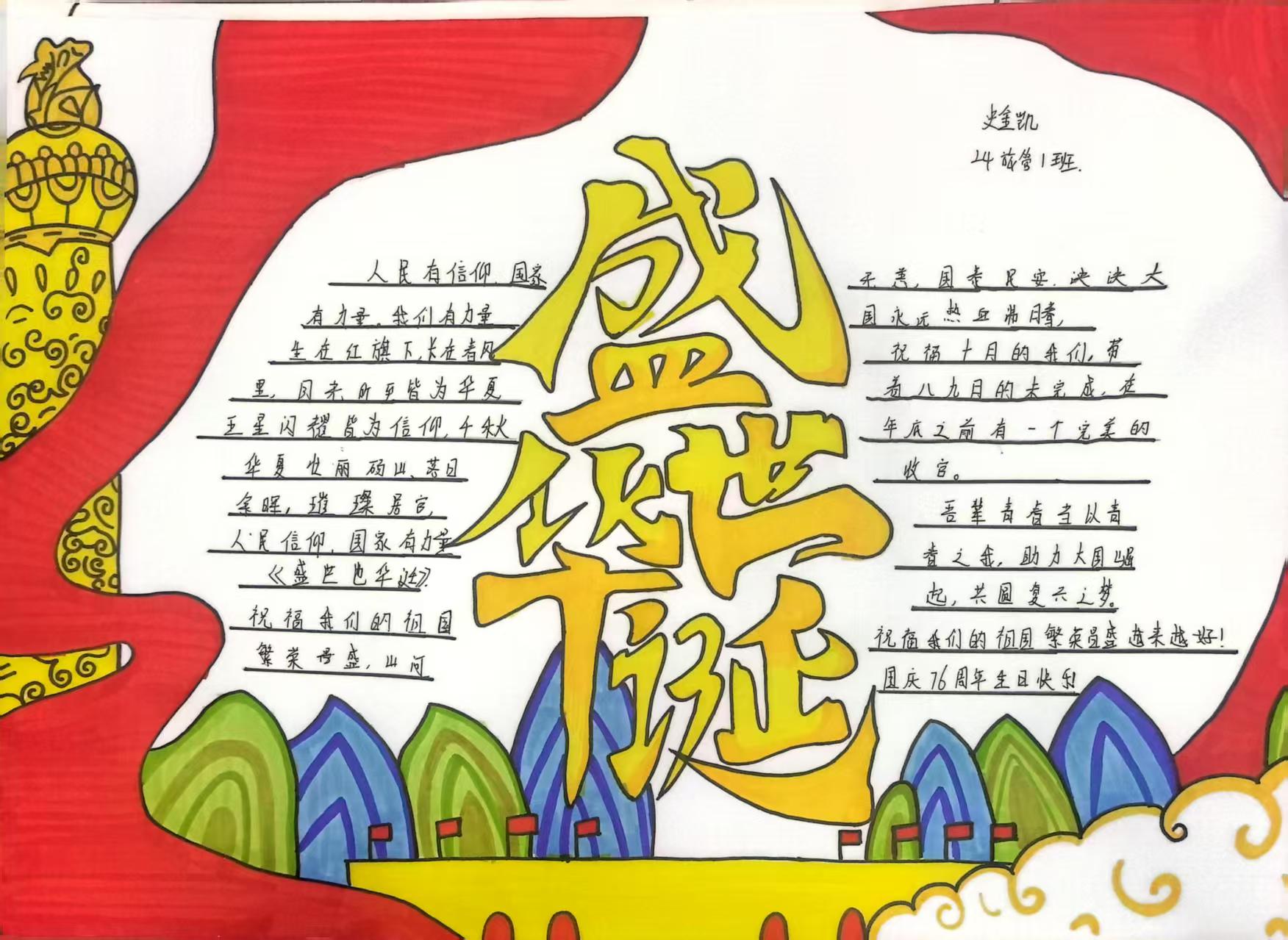 此次手抄报活动,既是一次生动的传统文化教育,也是一堂深刻的爱国主义实践课。它不仅为学生提供了展现艺术才华的平台,提升了大家的审美素养与动手能力,更让“家”的温情与“国”的壮阔在创作中深度交融,进一步营造了团结奋进、喜庆祥和的节日氛围,为推动系部文化建设与思政教育落地见效注入了新活力。