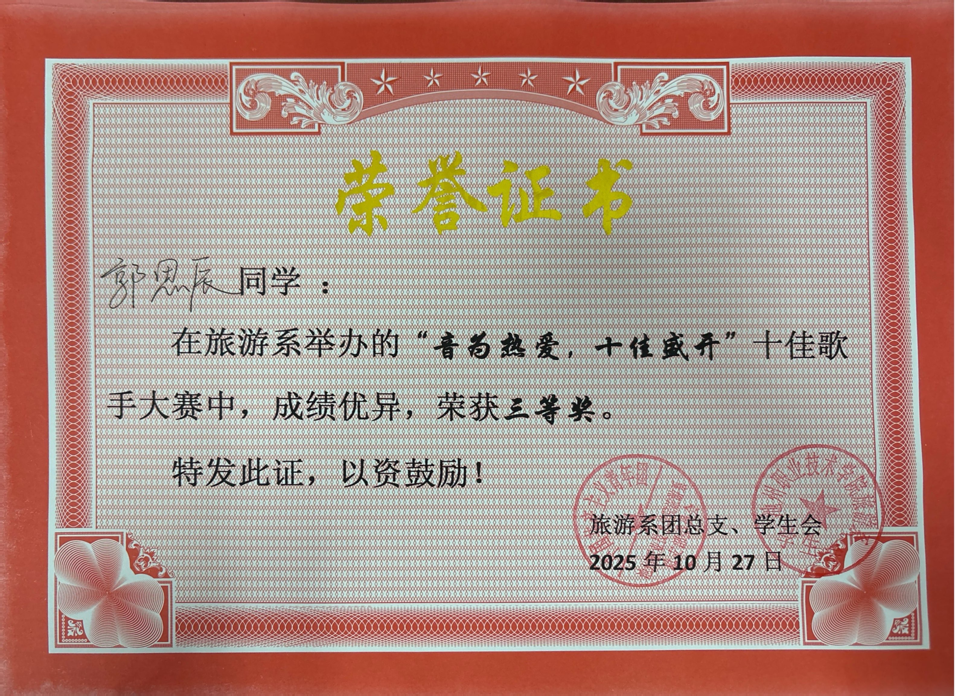 【荣誉榜】旅游系“音为热爱,十佳盛开”十佳歌手大赛获奖名单
