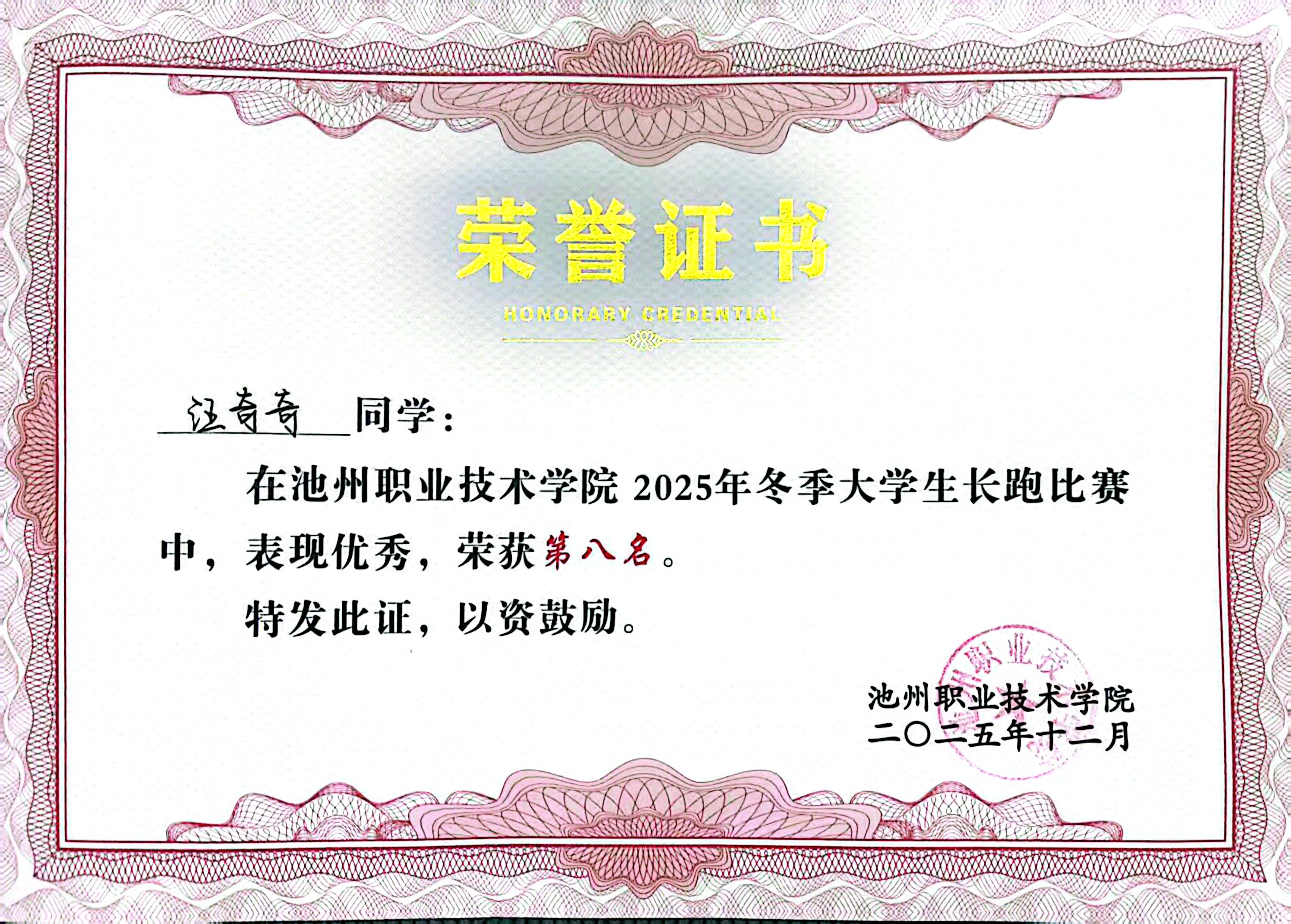 【荣誉榜】池州职业技术学院2025年冬季大学生长跑比赛获奖名单